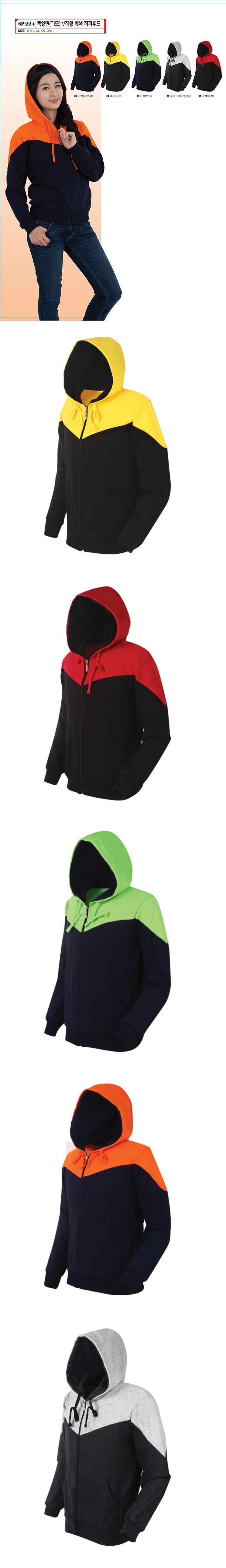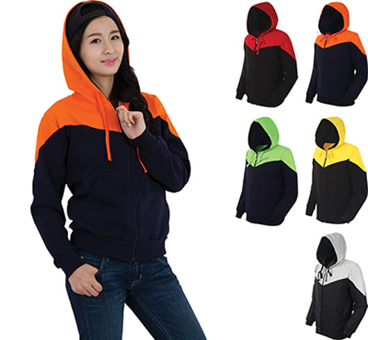 특양면 V자형 배색 지퍼 후드 티셔츠 [특양면/기모]