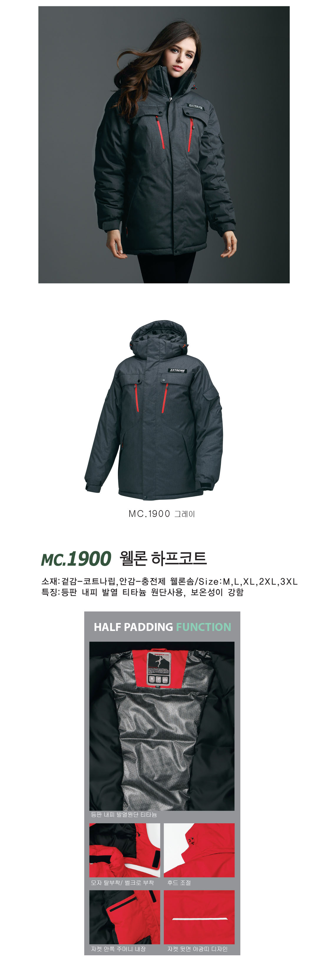 메덱스웰론 하프코트 [단체패딩/하프패딩/단체코트] / MC 1900 / 그레이