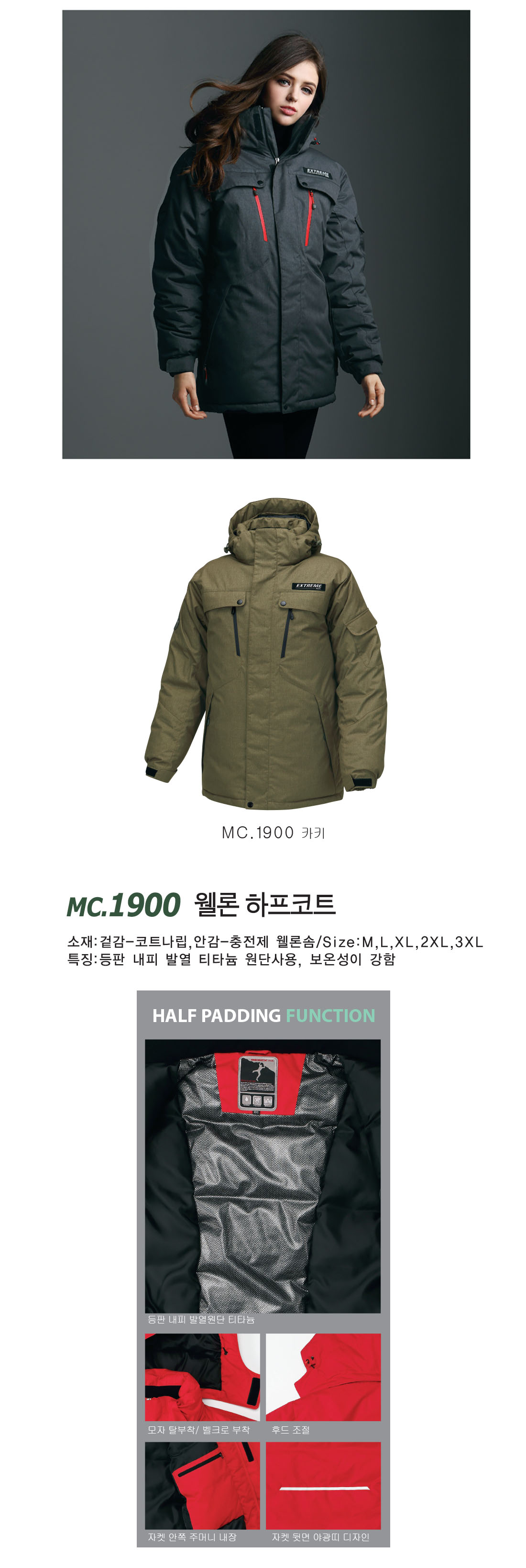 메덱스웰론 하프코트 [단체패딩/하프패딩/단체코트] / MC 1900 / 카키