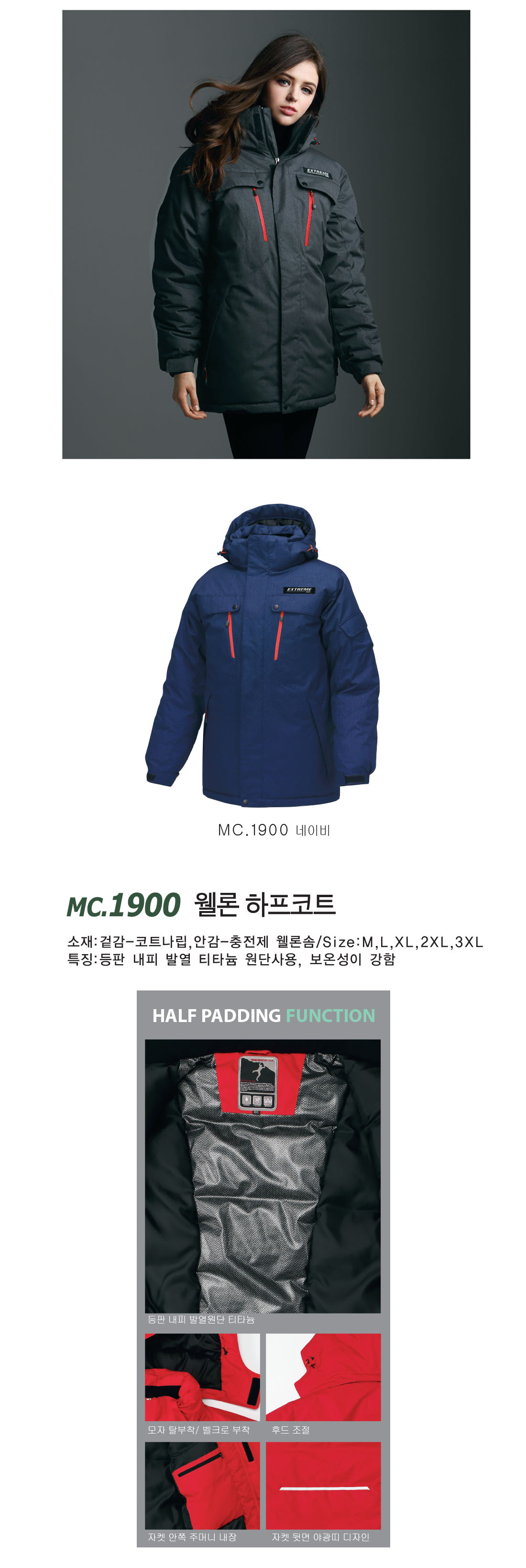 메덱스웰론 하프코트 [단체패딩/하프패딩/단체코트] / MC 1900 / 네이비