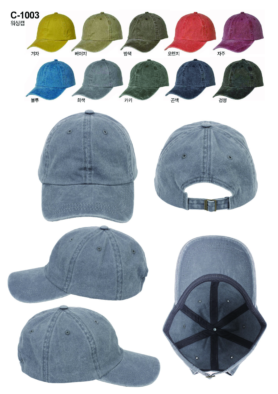 정일모자 워싱캡 [단체모자/캐쥬얼모자] / C-1003
