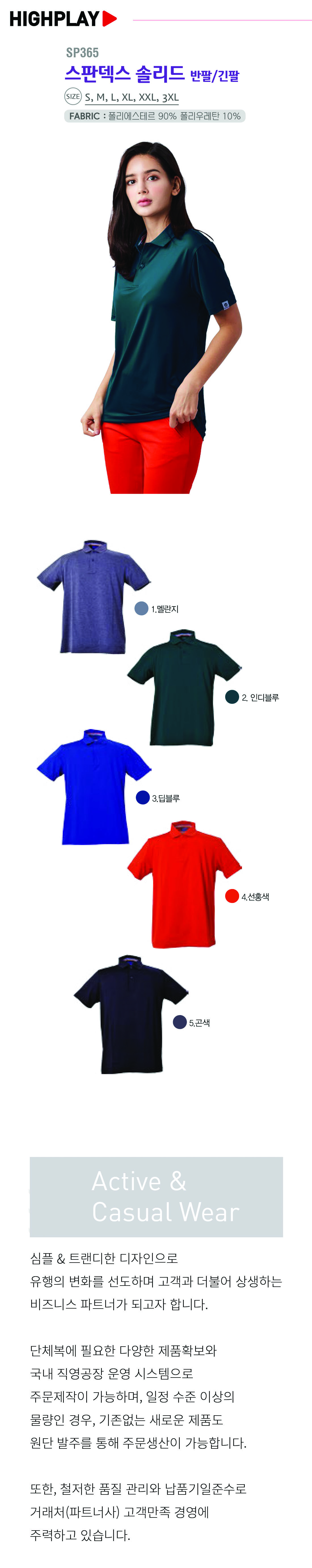 하이플레이 기능성 스판덱스 솔리드 카라티셔츠 [단체티셔츠,기능성카라티셔츠] / SP 365 / 반팔,긴팔