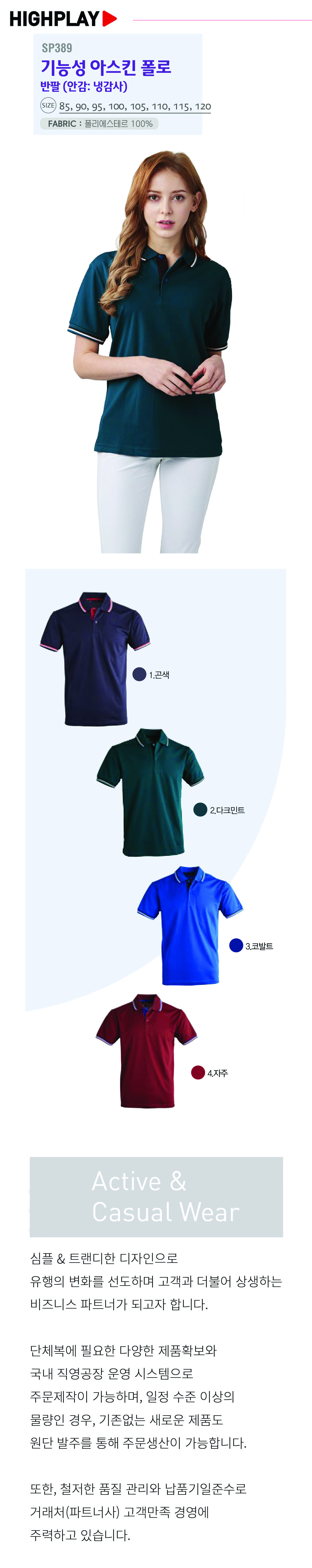 하이플레이 기능성 아스킨 폴로티셔츠 [단체티셔츠,카라티셔츠] / SP 389 / 반팔