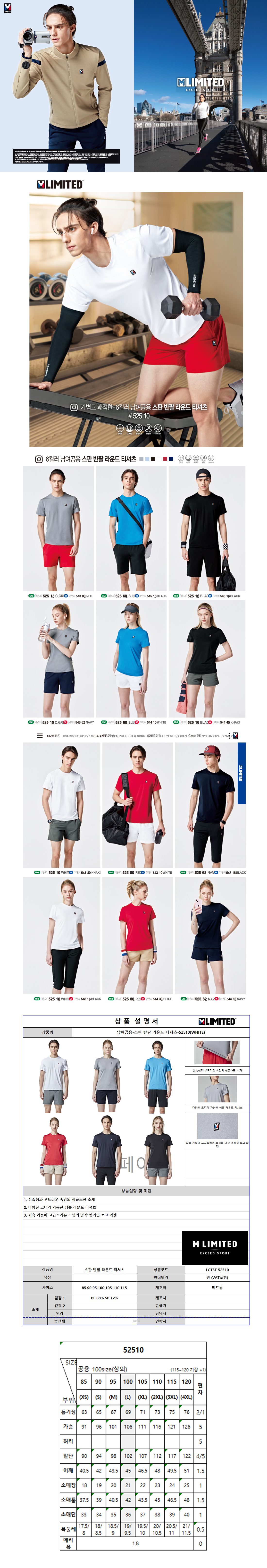 엠리밋 스판 반팔 라운드티셔츠 / 52580 / 레드